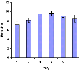 variance was performed to evaluate the effect of parity on the number of piglets born