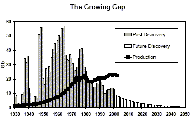 Figure 1: Past and future discoveries of oil and production (from Campbell 2003)