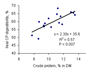 Figure 7. Relationship between crude protein content of the diet and ileal digestibility of crude protein |