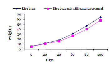 It is concluded that the feeding of cassava leaves with rice bran can be readily adopted by small scale farmers as both these feed resources are readily available in rural areas.