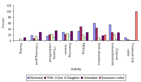 A survey involving 105 smallholder dairy farmers and 25 traditional livestock keepers practicing zero, semi-zero and unrestricted grazing systems was conducted during the wet season (April–May, 2005) in Tanga municipality, Tanzania. The households were randomly selected and the objectives of the study were to characterise socio-economic profiles of households, farm demography, herd productivity, animal and animal products hygiene, consumption and handling. This information is considered necessary to guide future public health, livestock development planning and interventions. Data collection was based on individual interviews using a questionnaire, examination of household premises and animal houses, as well as, direct observations. Herd productivity data were collected retrospectively based on available written records and owner recall bias. Survey results revealed that smallholder dairy farms accounted for 77% of the households interviewed and traditional farms for 23%. Over 60% of the traditional livestock keepers were classified as rural whereas over 80% of the smallholder dairy farmers were urban and peri-urban residents, respectively.