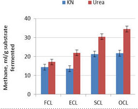 In a recent study, Ho Quang Do et al (2010, unpublished data) showed major effects of protein solubility on methane production in an in vitro incubation. Methane production was reduced by almost 50% when the protein source was fish meal (protein solubility 16.6%) compared with groundnut (protein solubility 76.2%) when sodium nitrate was the source of NPN and was 25% less when urea was the source of NPN.