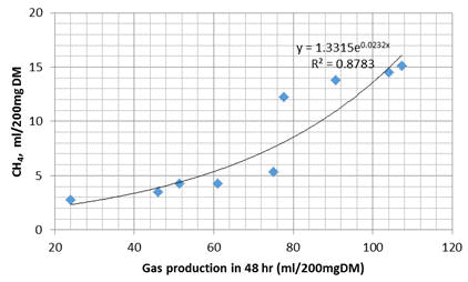 | Figure 3. Relationship between CH4 and the in-vitro gas production |
