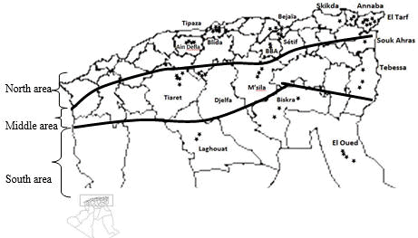goats in Algeria, covering the cradle of the Arabia breed (each area marked with a black borderline on the map corresponds to an Algerian wilaya). |